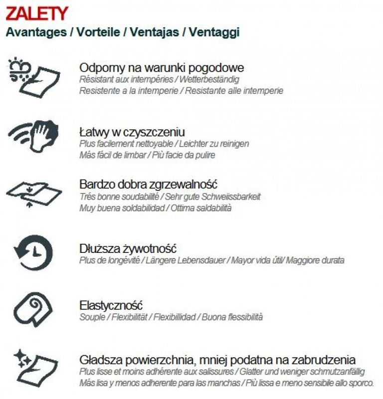 Tkaniny poliestrowe powlekane PVC charakteryzują się wysoką odpornością na działanie warunków atmosferycznych. Łatwość utrzymania w czystości i użytkowania jest atutem tej grupy tkanin. Jakość komponentów użytych przy produkcji tkanin zapewnia wysoką trwałość kolorów.